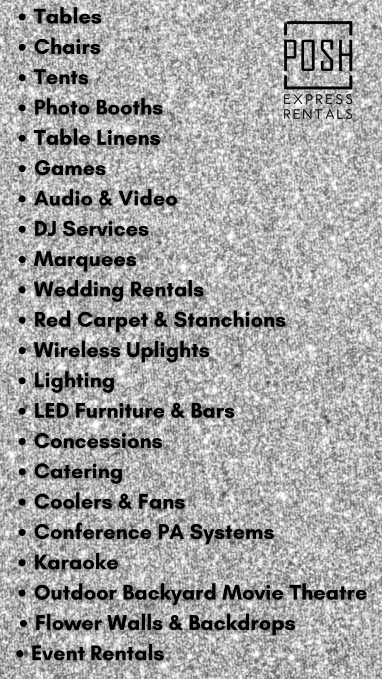 Posh Express Rentals is Las Vegas’s most trusted one-stop shop for party rentals, event rentals & photo booth rentals. Premium quality rentals, affordable pricing, reliable service, creating perfect events since day one across the valley. Your celebration, our expertise - let us handle the detais while you enjoy the moment.